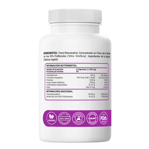 Trans Resveratrol 1000mg con Semilla de Uva 95% Polifenoles Cápsulas Veganas Vcaps – 60 Cápsulas