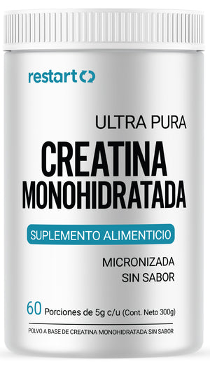 Restart Creatina Monohidratada Micronizada Sin Sabor - Creatina en Polvo 300g (60 Porciones)