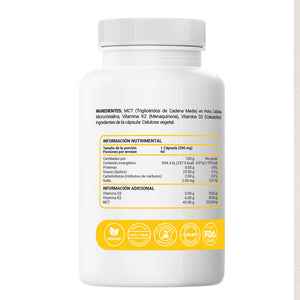 Ultra Vitamina D3 K2 MCT | Complejo de Vitamina D3 Vegana y K2 con Aceite MCT - 60 Cápsulas Vcaps